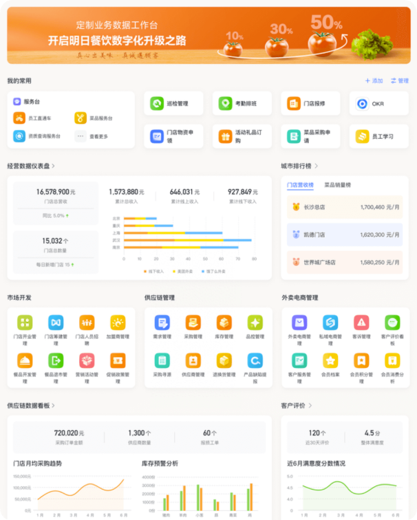 西貝自 2022 年選擇全員使用飛書,實(shí)現(xiàn)總部和門店的高效協(xié)同,并通過飛書 OKR 強(qiáng)化組織戰(zhàn)略落地,打造餐飲行業(yè)數(shù)字化最佳實(shí)踐。公司介紹西貝是中國餐飲百強(qiáng)企業(yè),旗下西貝莜面村是國內(nèi)中式正餐經(jīng)營規(guī)模最大的品牌。西貝 1988 年創(chuàng)立于內(nèi)蒙古臨河,擁有西貝莜面村、賈國龍功夫菜、西貝海鮮、九十九頂氈房四大品牌。 2020 年 6 月,入選“ 2019 年中國餐飲企業(yè)百強(qiáng)”,2021 年 12 月,入選 2021 內(nèi)蒙古民營企業(yè) 100 強(qiáng)名單。用飛書構(gòu)建一站式協(xié)作平臺, 1 秒將重要信息傳達(dá)全國 370 家門店作為全國最大的中式正餐連鎖企業(yè),創(chuàng)立 34 年來,西貝在全國 58 個(gè)城市開設(shè)了 370 家直營門店,員工 26000 人,每年服務(wù) 7000 萬消費(fèi)者。業(yè)務(wù)的快速成長,讓組織也面臨更大的挑戰(zhàn)。如何做強(qiáng)總部的專業(yè)化分工、實(shí)現(xiàn)各專業(yè)職能部門的橫向打通,增進(jìn)部門之間的協(xié)同關(guān)系,加強(qiáng)總部到全國門店的順暢溝通,成為西貝在數(shù)字化經(jīng)營過程中面臨的重要挑戰(zhàn)。完成向飛書的遷移后,西貝用飛書打通全員通訊錄,總部可即時(shí)聯(lián)系到任意門店的任意一個(gè)員工,員工間可設(shè)置精細(xì)的溝通權(quán)限管控,找人、溝通都更便捷。使用飛書會(huì)議異地溝通,支持千方同時(shí)參會(huì),一鍵發(fā)起企業(yè)內(nèi)直播,讓會(huì)議更高效。會(huì)后飛書妙記自動(dòng)生成錄像及逐字稿,1.8 萬字會(huì)議紀(jì)要只需 5 分鐘,準(zhǔn)確率高達(dá) 98% 以上,讓會(huì)議結(jié)論有據(jù)可循。西貝還將公司內(nèi)的各類文檔遷移到飛書文檔中,并使用知識庫實(shí)現(xiàn)重要信息的整合、沉淀。使用飛書前,資料沉淀在本地文件中,文件傳達(dá)到全國員工,需員工層層復(fù)制轉(zhuǎn)發(fā)、效率低。使用飛書后,可以用一個(gè)在線鏈接,和所有員工分享最新版本內(nèi)容,并支持隨時(shí)更新。文檔權(quán)限可嚴(yán)格管控,限制復(fù)制和下載權(quán)限,僅限內(nèi)部查閱,重要信息可 1 秒加急上萬人,使命必達(dá)。用飛書,僅需 1 小時(shí)搭建業(yè)務(wù)表格管理供應(yīng)商抽檢、開票工單餐飲上下游環(huán)節(jié)眾多,有大量非標(biāo)準(zhǔn)化的業(yè)務(wù)場景。這些業(yè)務(wù)場景無法通過成熟第三方系統(tǒng)實(shí)現(xiàn)業(yè)務(wù)數(shù)字化,而團(tuán)隊(duì)靠填表、傳文件、人工匯總的方式運(yùn)轉(zhuǎn),又低效繁瑣。飛書多維表格可靈活搭建輕便的業(yè)務(wù)數(shù)字化工具,系統(tǒng)“想要就能有”,最快 1 小時(shí)即可上線。比如,西貝食品安全巡視組會(huì)定期進(jìn)行供應(yīng)商、門店的抽檢。使用飛書前,所有小組成員需在 Excel 上填寫相關(guān)信息,信息層層上交、匯總,部門逐級催辦,數(shù)據(jù)統(tǒng)計(jì)報(bào)告制作繁瑣,每次抽查,往往需要 1 整個(gè)工作日專人進(jìn)行資料整理。使用飛書后,團(tuán)隊(duì)將抽檢工作通過飛書多維表格協(xié)作,使用表格分配任務(wù)、系統(tǒng)自動(dòng)提醒還未提交的成員,數(shù)據(jù)分頭錄入、自動(dòng)匯總,并能通過儀表盤實(shí)時(shí)展現(xiàn)數(shù)據(jù)洞察。類似的,通過多維表格搭建開票流程的協(xié)作工具,也讓西貝團(tuán)隊(duì)每年省下 65 人·天。西貝門店與客服中心的同事,經(jīng)常遇到客戶補(bǔ)開發(fā)票的需求。客戶離店后需補(bǔ)開發(fā)票,無法按常規(guī)開票流程自助實(shí)現(xiàn),往往需要客服、財(cái)務(wù)、門店多方協(xié)協(xié)助完成。使用飛書前,客服或門店接到客戶特殊開票需求后,需與客戶人工收集相關(guān)信息;部分開票信息不規(guī)范、不全面,可能需要和顧客二次溝通,效率低下、影響顧客體驗(yàn);相關(guān)信息通過即時(shí)消息與財(cái)務(wù)溝通,無法清晰掌握開票進(jìn)度,協(xié)作成本高;每次開票信息都需要財(cái)務(wù)系統(tǒng)中人工確認(rèn)匹配,操作易出錯(cuò);使用飛書后,客戶點(diǎn)擊客服提供的鏈接、或在門店掃碼,填寫飛書表單,可準(zhǔn)確提交開票信息;系統(tǒng)自動(dòng)通知財(cái)務(wù)同事處理開票;多維表格內(nèi)自動(dòng)根據(jù)客戶所在門店匹配對應(yīng)開票信息,省去人工確認(rèn);客服完成開票后,系統(tǒng)自動(dòng)提醒客服或門店辦結(jié)情況。從消費(fèi)者到門店員工,再到總部客服、財(cái)務(wù)團(tuán)隊(duì),使用多維表格無縫連通,信息效率大大提高。用飛書搭建學(xué)習(xí)群,自動(dòng)化沉淀組織洞察與思考西貝倡導(dǎo)建設(shè)學(xué)習(xí)型組織,在高管團(tuán)隊(duì)中建立“日清日高”學(xué)習(xí)群(今天完成的事情必須比昨天有提高,明天的目標(biāo)必須比今天更高),鼓勵(lì)每位高管每日分享工作心得體會(huì),并將內(nèi)容匯總、沉淀西貝文化,持續(xù)擴(kuò)大影響力。使用飛書前,西貝需安排專人負(fù)責(zé)匯總?cè)簝?nèi)消息,員工需逐條手工匯總,費(fèi)時(shí)費(fèi)力,資料沉淀在本地文件中,難傳播、檢索。使用飛書后,飛書群內(nèi)機(jī)器人可將群消息自動(dòng)同步到多維表格中,并自動(dòng)生成精致的畫冊視圖,員工打開多維表格可隨時(shí)查